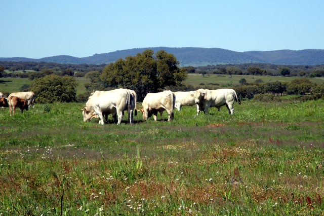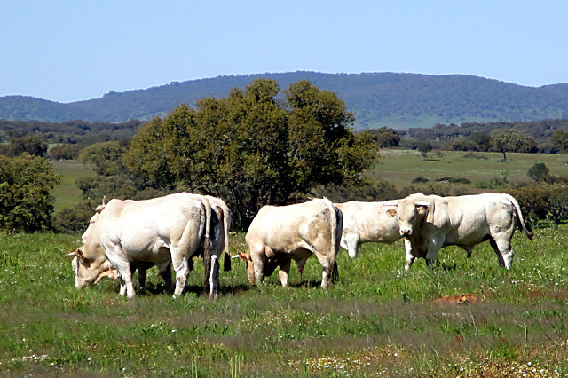 Há mais de vinte anos que em Agua de Elvirinha se utiliza a raça francesa "Blonde d'Aquitaine". Notável raça originária do sudoeste da França, bem adaptada a temperaturas elevadas e com assinaláveis performances produtivas que faz desta raça uma das mais valorizadas no mercado dos "bovinos de carne". Desde então, e até hoje, sempre fomos importando reprodutores franceses da melhor genética por forma a assegurar uma permanente renovação das nossas linhas "Blonde" que nos foi permitindo a seleção de reprodutores quer para uso interno quer também para venda a outros criadores.